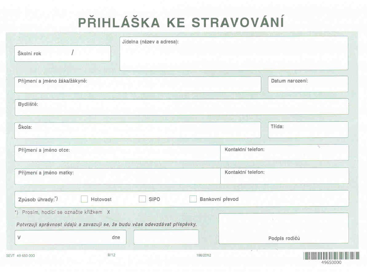 Online přihlášku vyplňují pouze noví strávníci !!!
